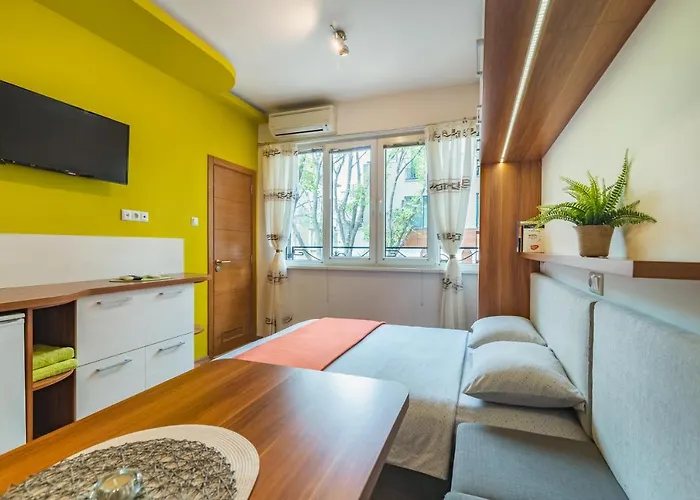 Apartamentul oferă mini-bucătărie cu un cuptor cu microunde, frigider și sticlărie, precum și filtru de cafea/ceai. De asemenea, oaspeții pot lua un autobuz la stația de autobuz Pirin, situată la aproximativ 10 minute de mers pe jos, pentru a explora restul orașului Varna.